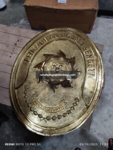 Produk dibuat dari bahan tembaga maupun kuningan yang dikenal sangat kuat dan tahan terhadap korosi serta perubahan cuaca ekstrem. Dengan perawatan mudah, lambang ini dapat bertahan puluhan tahun tanpa kehilangan kilau dan keindahannya.Detail dan Presisi Tinggi